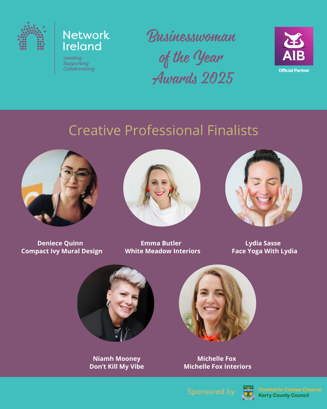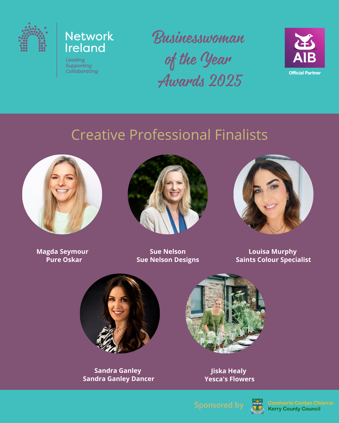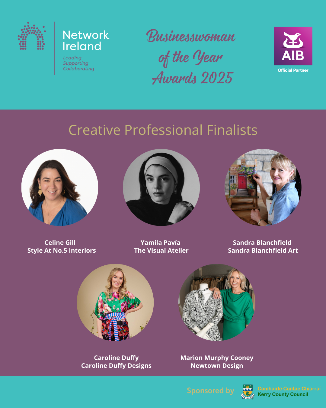 Creative ProfessionalSponsored by Kerry county Council Creative Professional This category is to recognise creative professional women. Examples of creative professionals include: Artists, Sculptors, Musicians, Photographers, Poets, Songwriters, Dancers, Singers, Architects, Make-up artists, Stylists, Bakers. This award will go to recognise the creative achievements of the individual. Our 2025 Finalists