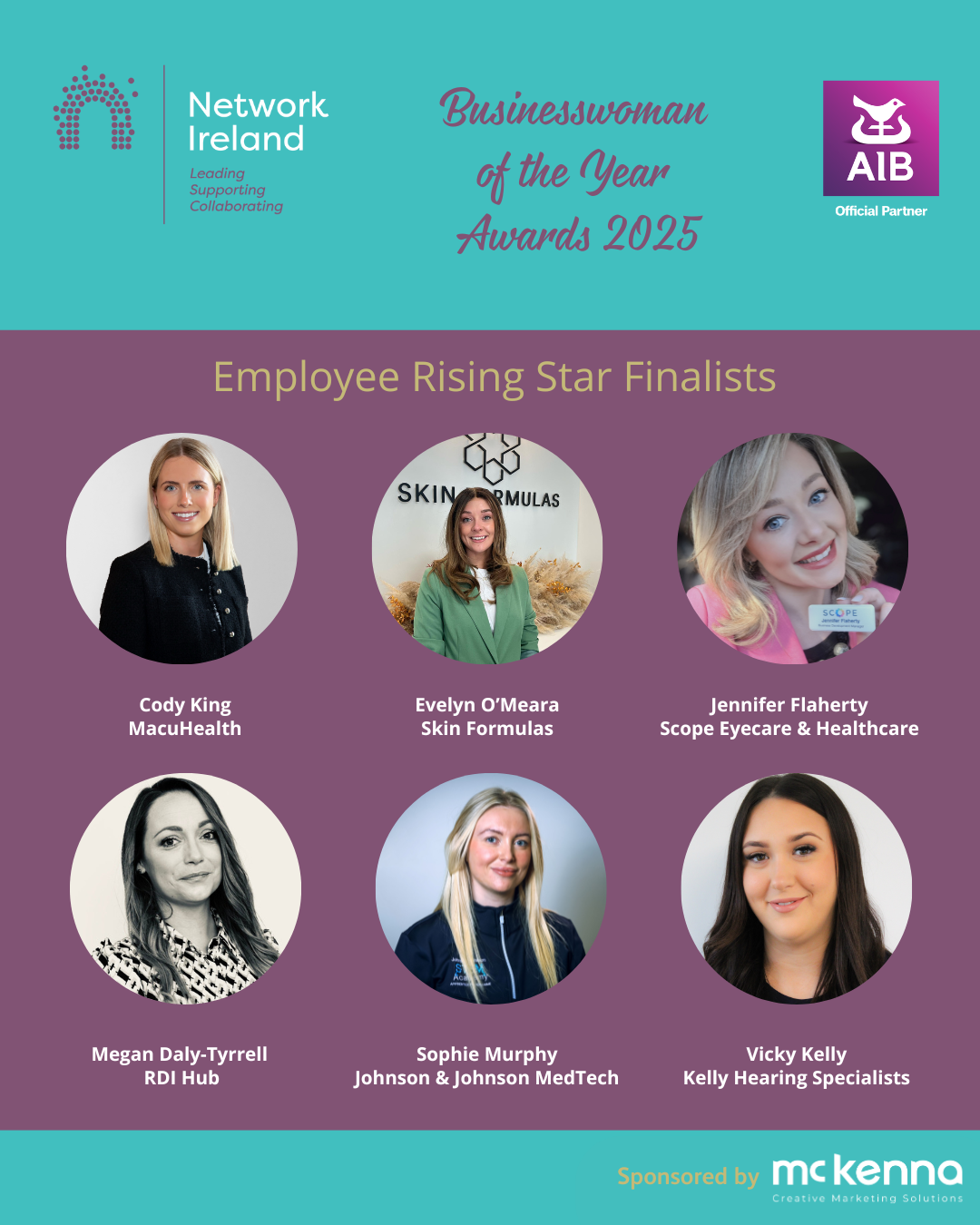 Employee Rising StarSponsored by McKenna creative Marketing SOLUTIONS This award is open to professional women working within a company who have made important advances in their chosen career path and are acknowledged as a future leader in business while showing passion and drive for their work. It is open to employees who are starting out on their career. Our 2025 Finalists