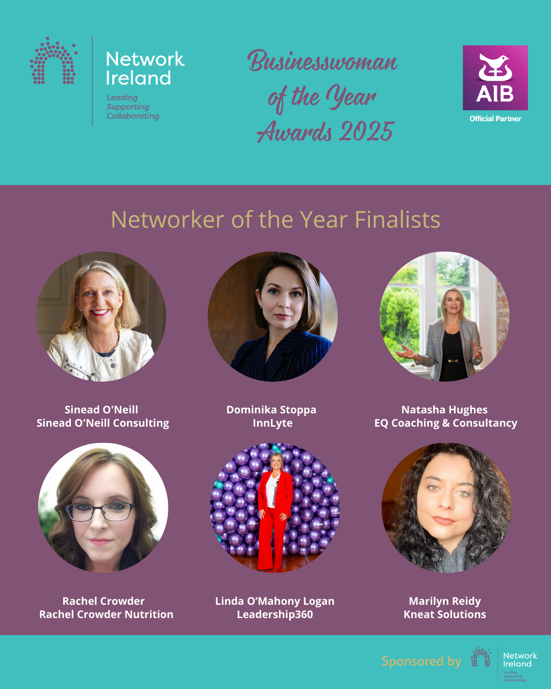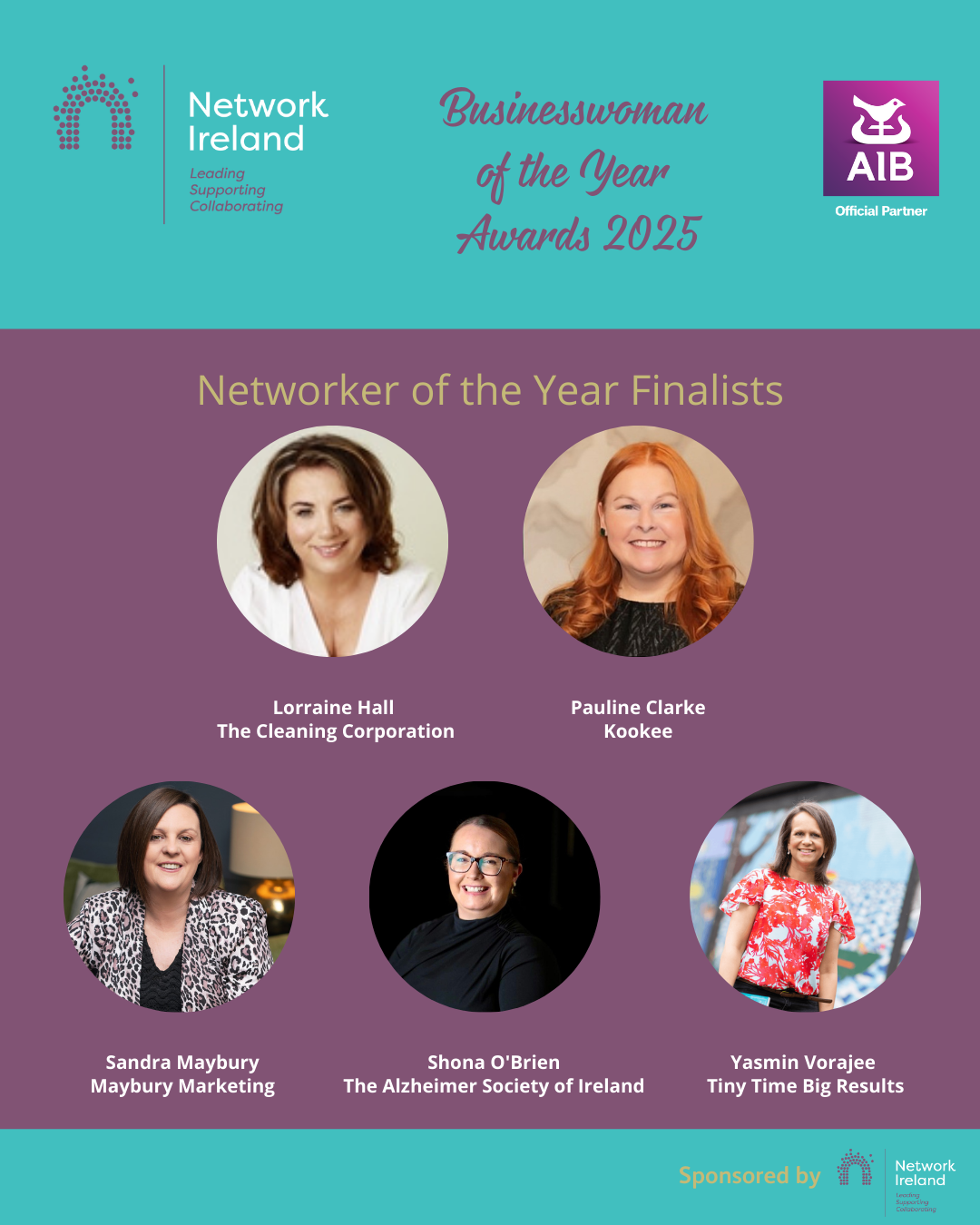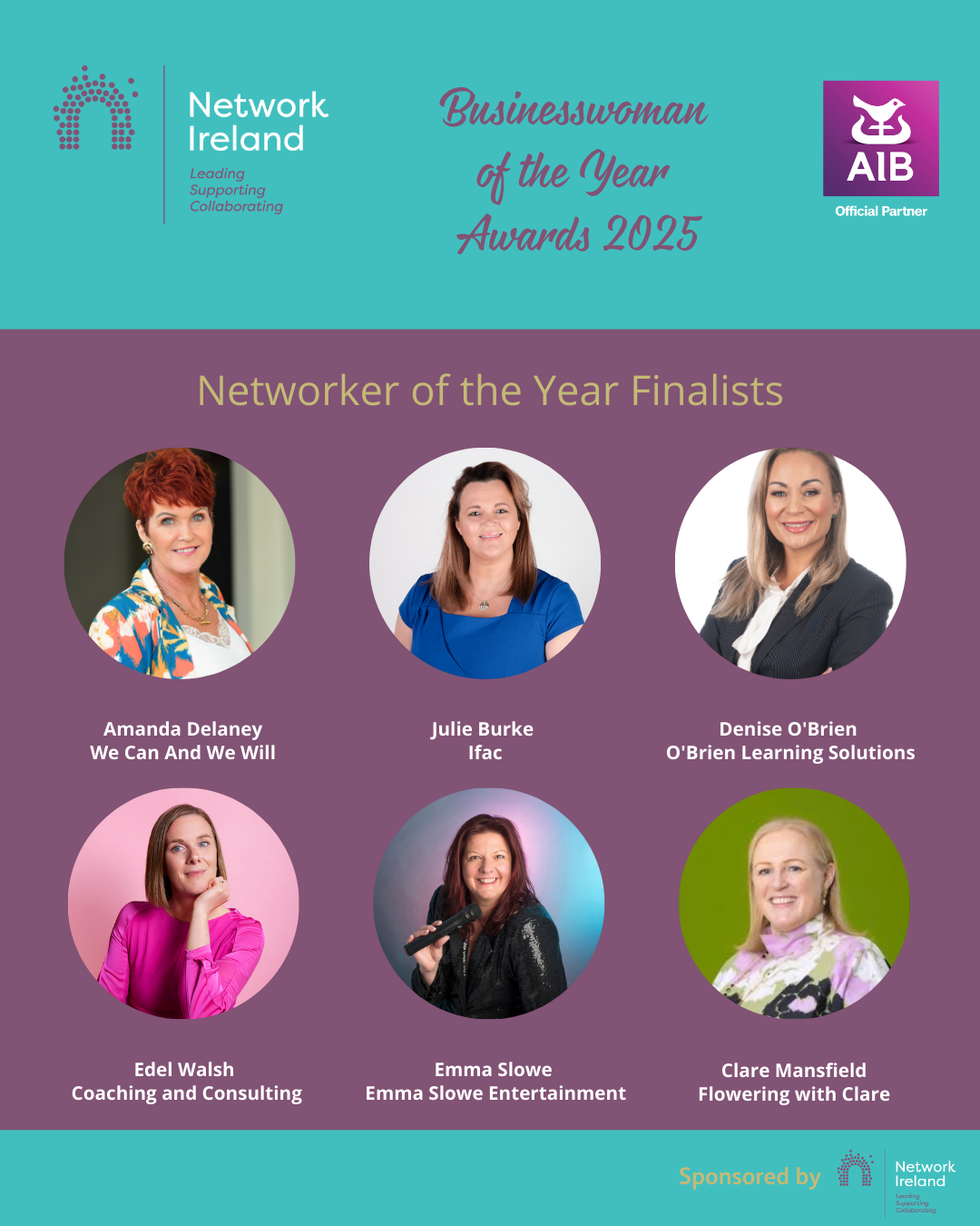 About the AwardsIreland is full of talented and dedicated female professionals who have successful careers and run successful businesses, but in many cases also juggle the needs of their families, plus are involved in the community and carry out voluntary work. Network Ireland Businesswoman of the Year Awards are designed to recognise the achievement of these women. The Awards are divided into 8 categories, see listed below, so there is a category suitable for every professional woman. Previous applicants have benefited from publicity in print media and social media, both locally and nationally. Throughout the process of applying for these awards, applicants get a chance to review their current position, think about their future direction, improve strategic focus and learn more about themselves and what they would like to achieve in the future. This year we will run 17 Local branch finals. The winners of these will go forward to represent their branch at a national level. Winners are chosen by a panel of business experts based on the information supplied in the application form. The judging panels are looking for women who understand business, who are passionate about their career/business, and who show a determination to succeed no matter what life throws at them. Award Categories 2025 Networker of the Year Sponsored by Network Ireland Networking is about developing relationships. It’s about creating opportunities, while leading, supporting, and collaborating with others. Networking encourages members to make new friends, build relationships, and create new business connections. Through these new relationships you can develop your personal & professional network. You do not have to have served on a committee to be recognised for this award. Network Ireland’s wish is to showcase each and every member. This award is to recognise members who have successfully used their Network Ireland membership to lead, support & collaborate with other members whilst achieving their own goals. Our 2025 Finalists