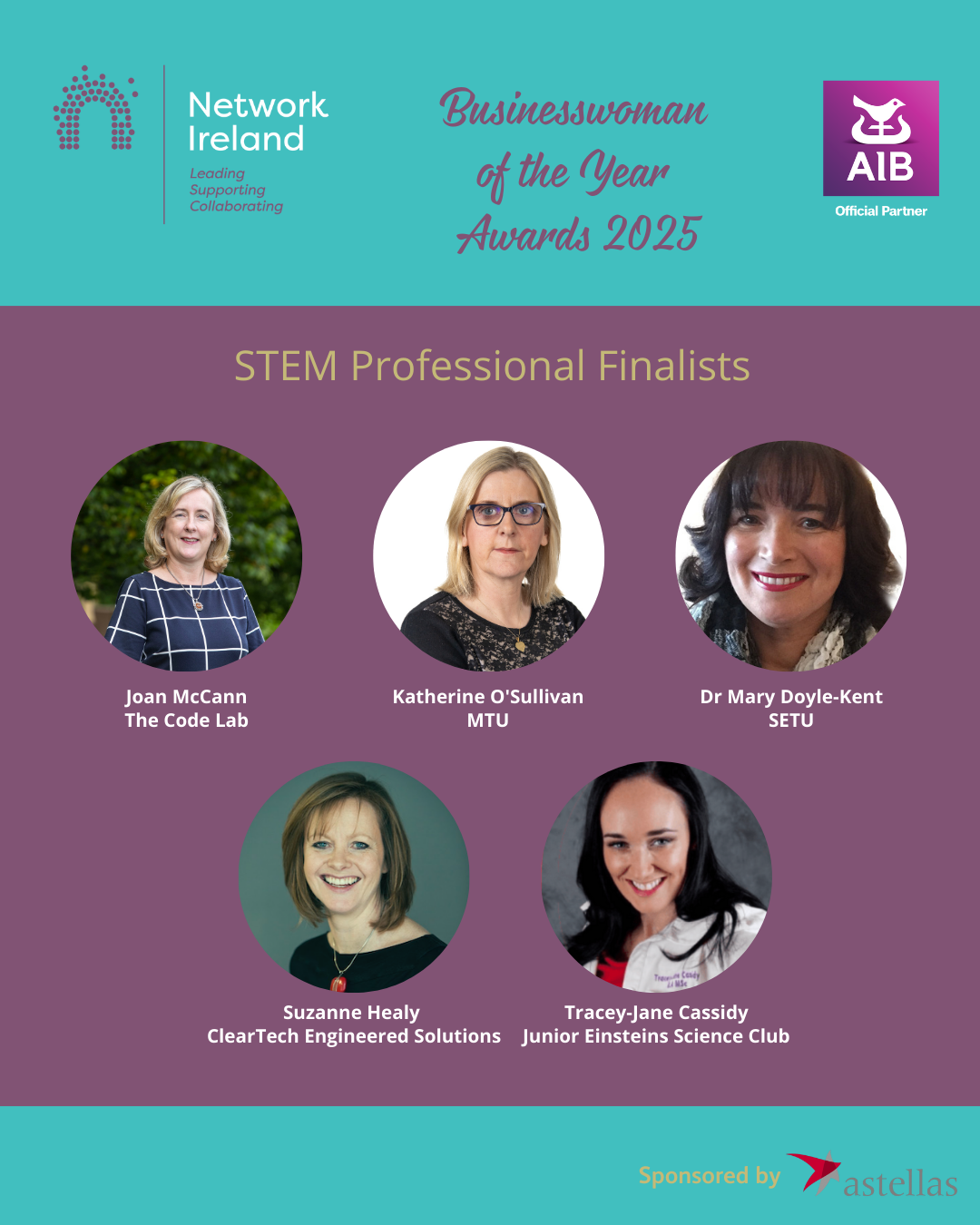 STEM ProfessionalSponsored by Astellas This Individual award is to recognise professional women in STEM. This category is open to business owners or an employees working within the Science, Technology, Engineering and Mathematics sector. This award will go to recognise the contribution of the individual to the STEM sector. Our 2025 Finalists